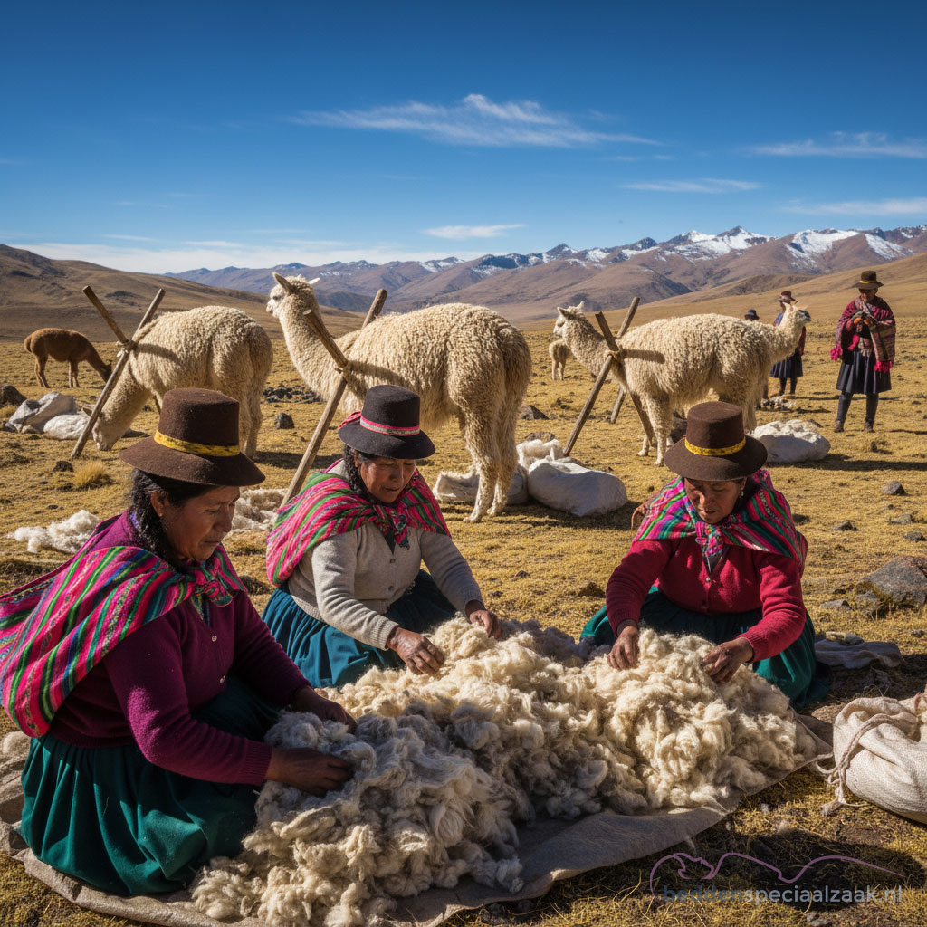 De Peruaanse alpacavezel die Brun de Vian-Tiran verwerkt, komt van hooggelegen plateaus tussen de 4000 en 5000 meter hoogte, waar de dieren zich hebben aangepast aan extreme temperatuurverschillen.