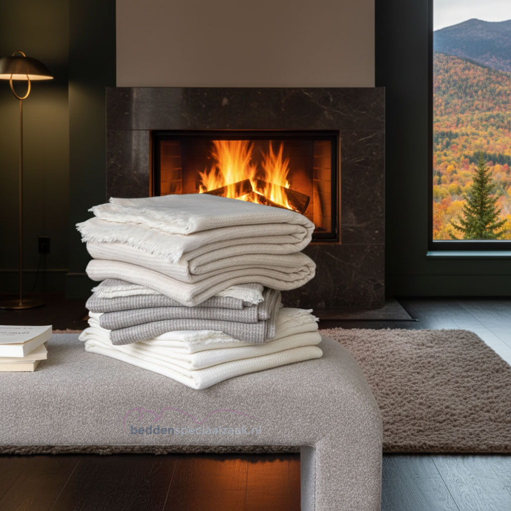 Wat kasjmierwol zo bijzonder maakt voor dekens, is het vermogen om uitstekend te isoleren bij een verrassend laag eigen gewicht. De fijne vezels sluiten veel lucht in, en lucht is één van de beste natuurlijke isolatoren. Hierdoor voelt u zich onder een kasjmier deken heerlijk warm, zonder dat u wordt bedolven onder een zwaar gewicht. Dit draagcomfort is een van de belangrijkste redenen waarom mensen voor kasjmier kiezen.