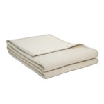 Normale merinowol zoals gebruikt in de “Réale” deken komt voornamelijk uit Australië en Frankrijk, deze wolvezels hebben een dikte van ongeveer 24 micron. Dat klinkt technisch, maar het vertaalt zich naar een deken die warm, licht en comfortabel aanvoelt. Deze wol is al fijner dan gewone schapenwol, wat betekent dat u niet dat kriebelige gevoel ervan zult krijgen. De “Réale” deken weegt 380 gram per vierkante meter en heeft door zijn speciale weeftechniek een luchtige, zachte structuur.