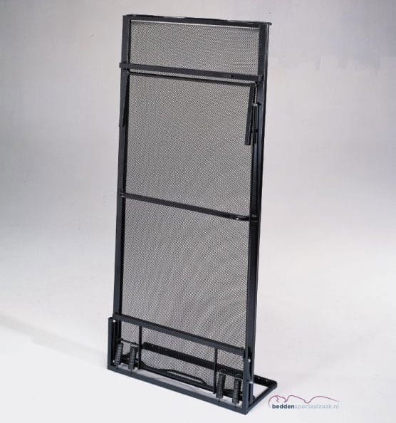 Een verticaal opklapbed klapt omhoog richting het plafond. U duwt het voeteneinde naar boven en het bed verdwijnt tegen de wand. Dit type is voorzien van speciale trekveren, waardoor u het ledikant zonder enige moeite kunt uit- en opklappen. Het grote voordeel? Overdag ziet je zowat niet dat er een bed staat. Veel mensen kiezen ervoor om deze variant in een kast te verwerken, waardoor de slaapkamer overdag volledig verdwijnt. Wel is het zo dat een omkasting bij deze fabrikant niet wordt aangeboden, wanneer u dit wenst zou een derde partij daarvoor zorg dienen te dragen.