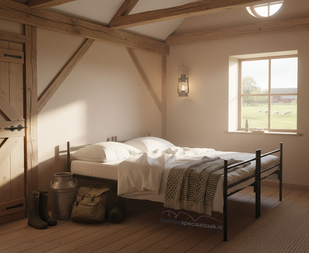 Dit bed komt uit Nederland, van een fabrikant die er verstand van heeft. Kuperus maakt al generaties lang stalen bedden met de hand, geen massaproductie, maar vakwerk. Het resultaat? Een stapelbed waar je blind op kunt vertrouwen. Het stevig stalen frame houdt stand, ook als het bed dag in dag uit gebruikt wordt. De dwarsgespannen spiraalbodems zijn niet alleen comfortabel, maar zorgen er ook voor dat je matras goed kan ventileren. Dat is belangrijk voor een gezond slaapklimaat.