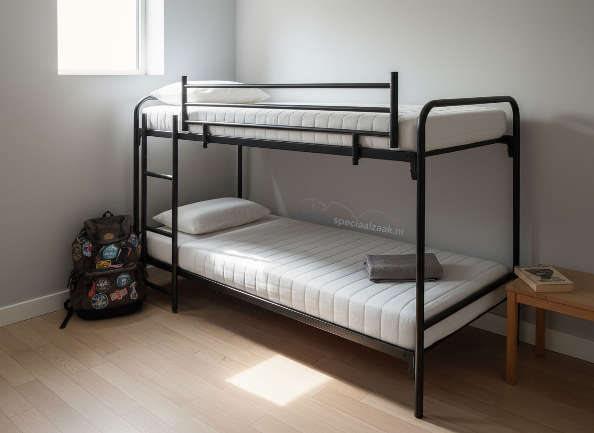 We zien dit bed vaak terug in jeugdherbergen, vakantiewoningen en zelfs kazernes, dat zegt iets over de degelijkheid ervan. Maar ook voor particulieren die willen investeren in kwaliteit, is dit stapel- of etagebed perfect. U koopt het één keer goed, en heeft er jarenlang plezier van. Dat scheelt gedoe en op termijn ook geld, omdat u niet om de paar jaar een nieuw bed hoeft te kopen.
