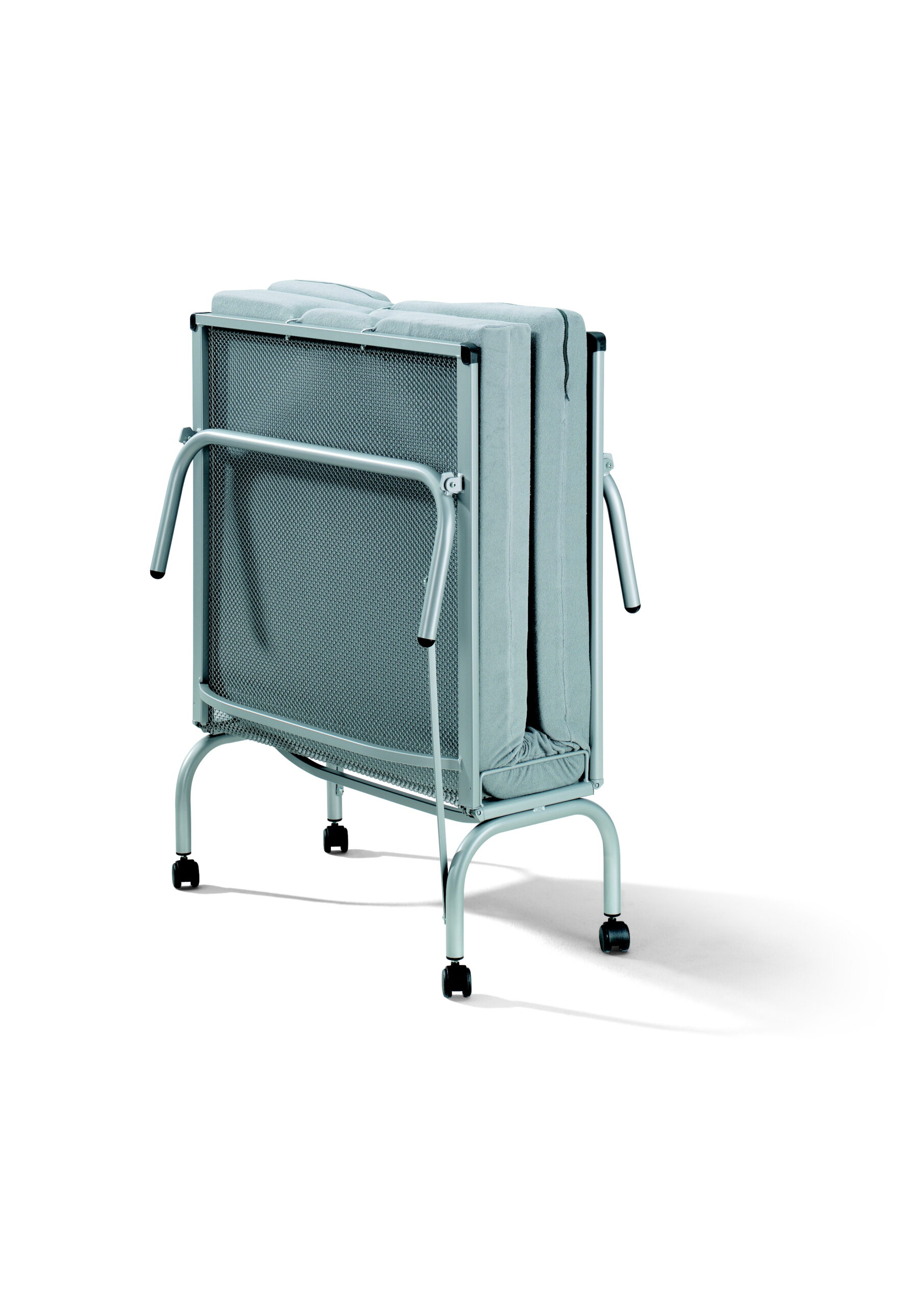 Het bed, voorzien van wieltjes, is eenvoudig te openen en al even gemakkelijk weer in elkaar te vouwen. Dit maakt het ideaal voor dagelijks gebruik, zowel thuis als in professionele omgevingen. Het frame is stevig geconstrueerd en de afwerking is zodanig dat het bed jarenlang intensief gebruikt kan worden zonder kwaliteitsverlies.