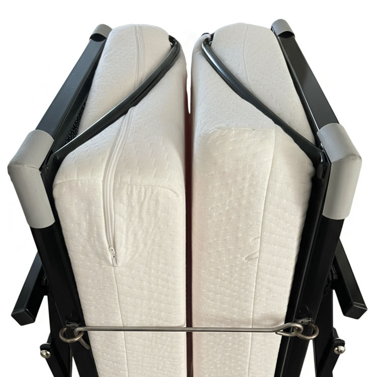 Een aantal kenmerken van dit vouwbed maken het bijzonder geschikt voor veeleisende situaties. De afmetingen zijn 80 of 90 centimeter breed en 200, 210 of 220 centimeter lang, zodat ook langere personen comfortabel kunnen slapen. De bijpassende matras (SG30 – 10 centimeter dik) is als optie leverbaar met een waterdichte, afneembare en brandvertragende hoes, wat vooral belangrijk is voor zorginstellingen.